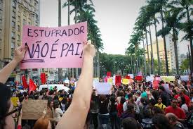 protesto contra o que elas chamam de “bolsa estupro” que prevê, entre outras